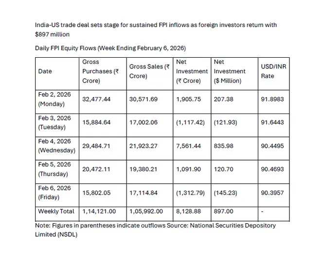 The India-US trade deal is expected to trigger sustained foreign portfolio inflows into Indian markets as overseas investors regain confidence in the country’s growth trajectory, with the week ending February 6, 2026 marking a decisive shift as FPIs turned net buyers after weeks of relentless selling.