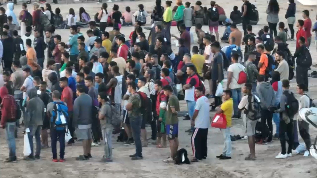 Fox News drones captured footage of a massive group of illegal border crossers in Eagle Pass, Texas. (Fox News)