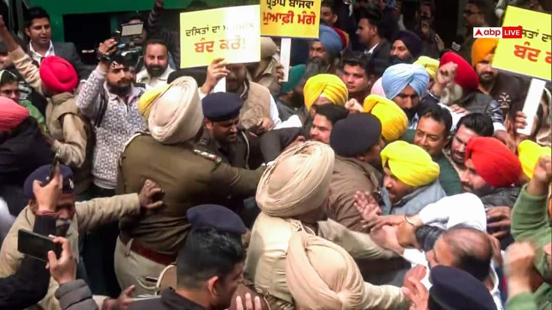 Aam Aadmi Party workers demonstrated against Bajwa with a band. The protesting protesters have been detained by the police. Punjab government ministers, AAP MLAs and party workers were present in this protest. On Bajwa’s statement, Harbhajan Singh ETO said that earning a living by playing in a band is not a crime.