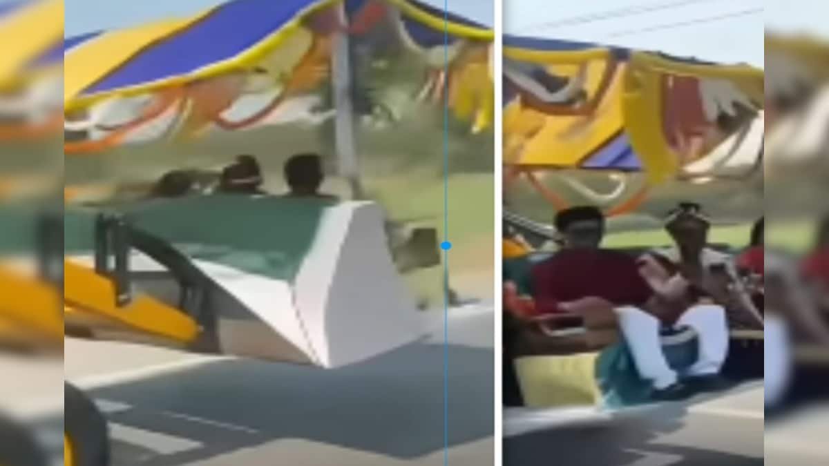 These days, a video of a unique wedding procession is going viral on social media. The video is said to be from UP where a groom decided to take the wedding procession in a unique style. While usually the procession is taken out with a convoy of expensive vehicles, this procession was taken out on a bulldozer. Along with the groom, his mother and brother were also seen sitting on the blade in front of the bulldozer. A person passing on the road made a video of this unique procession and shared it on social media, from where it went viral.